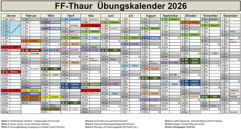 Übungskalender 2026
