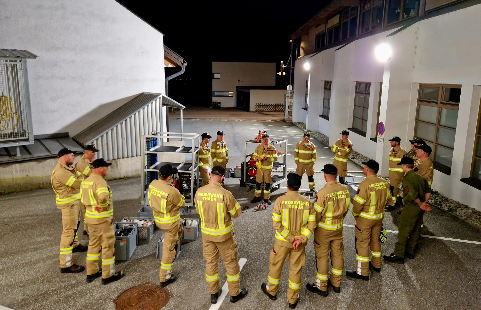 Die Feuerwehr Thaur entschied sich daher, eine Waldbrandgruppe zu implementieren, in welcher sich die Mitglieder freiwillig melden können. Diese Gruppe welche aktuell ca. 40 Mitgliedern der Feuerwehr Thaur umfasst, wird im Alarmfall "Unterstützungseinsatz Waldbrand/ Vegetationsbrand" über eine eigenen Pagerschleife alarmiert.