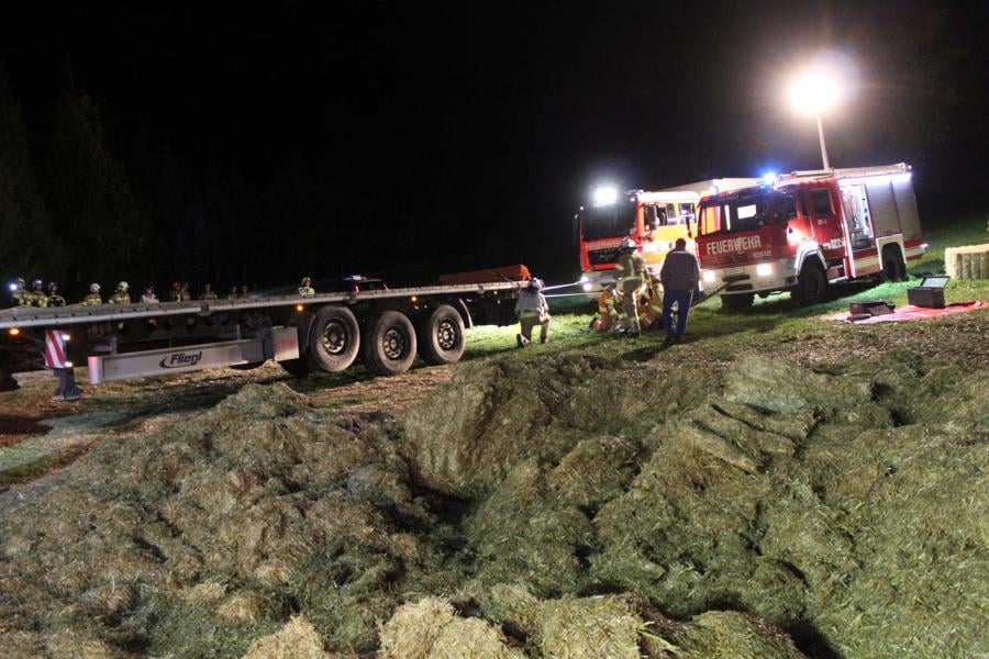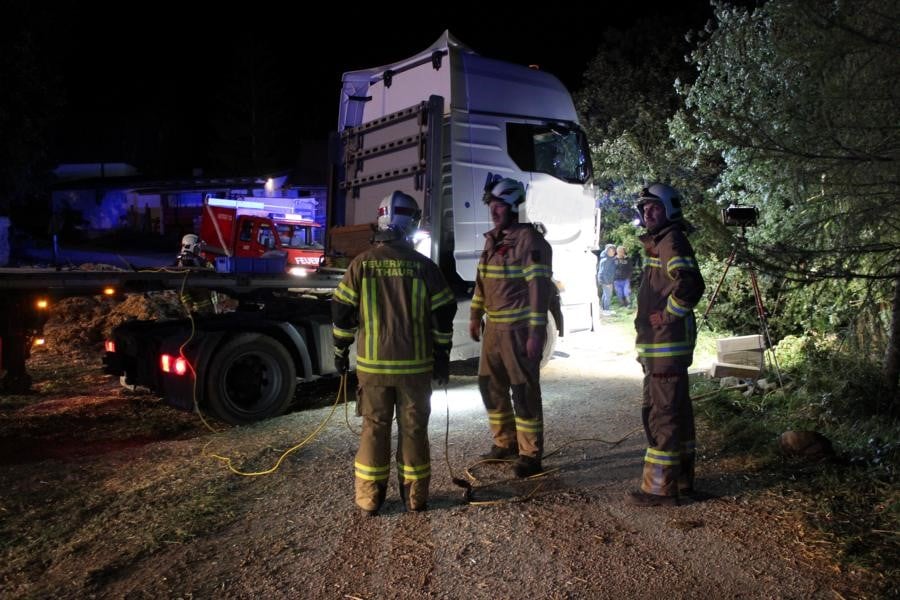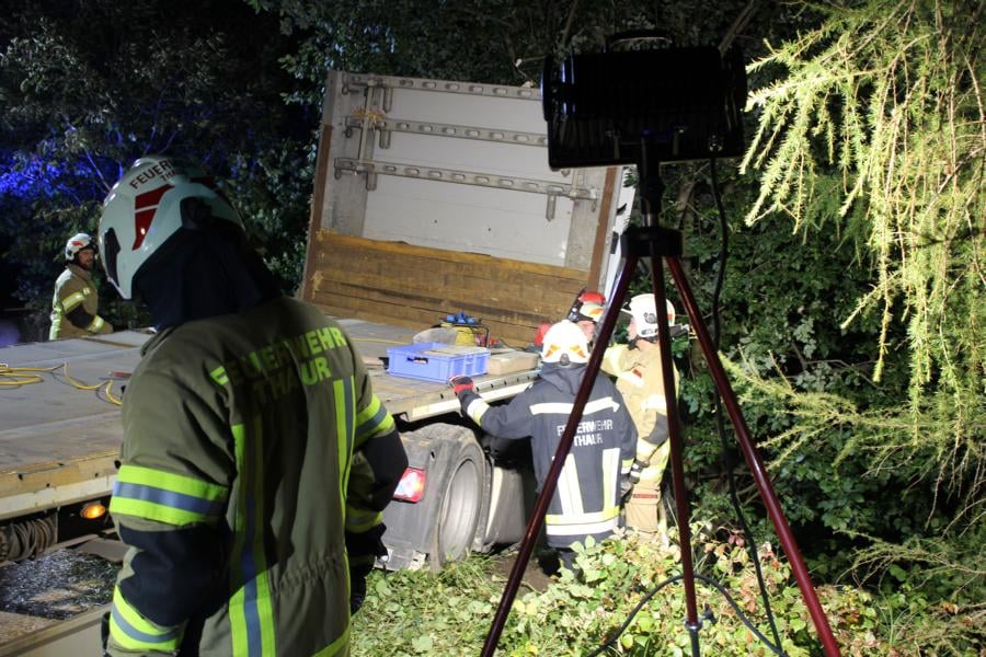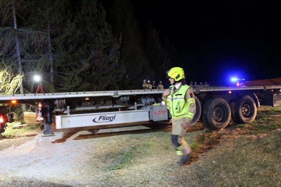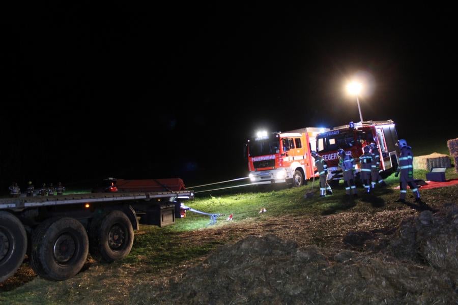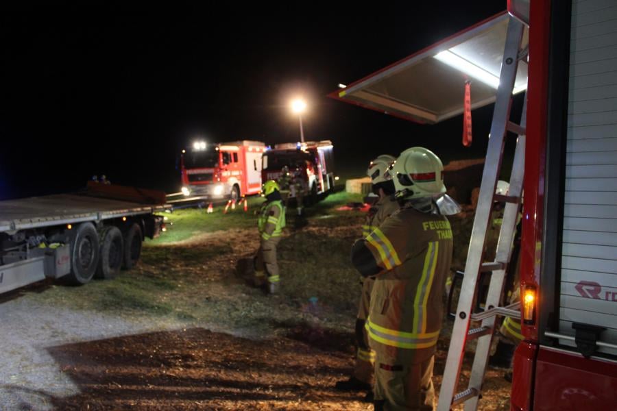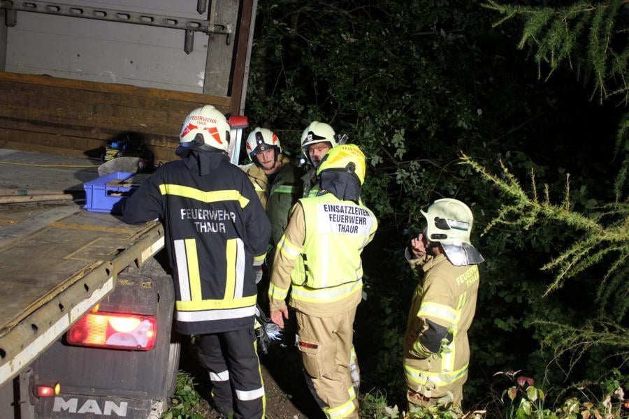 Mittels Pager wurden die Kameraden der Feuerwehr Thaur zu einem drohenden Fahrzeugabsturz alarmiert. Nach eintreffen und Erkundung des Einsatzleiters konnte ein Sattelzug, welcher über die Fahrbahn hinaus kam und abstürzen zu drohte vorgefunden werden. Weiteres wurden die Kameraden der Freiwilligen Feuerwehr Hall mit dem SRF zur Bergung nachalarmiert. Die Feuerwehr Thaur sicherte das Fahrzeug mittels Hubzug, weiters wurde das Zugfahrzeug unterbaut um ein weiteres einsinken zu verhindern. Nach Positionierung des SRF's und Anschlagen der Winde konnte, der Sattelzug geborgen werden. Nach ca. eineinhalb Stunden konnte die Wehren wieder einrücken.