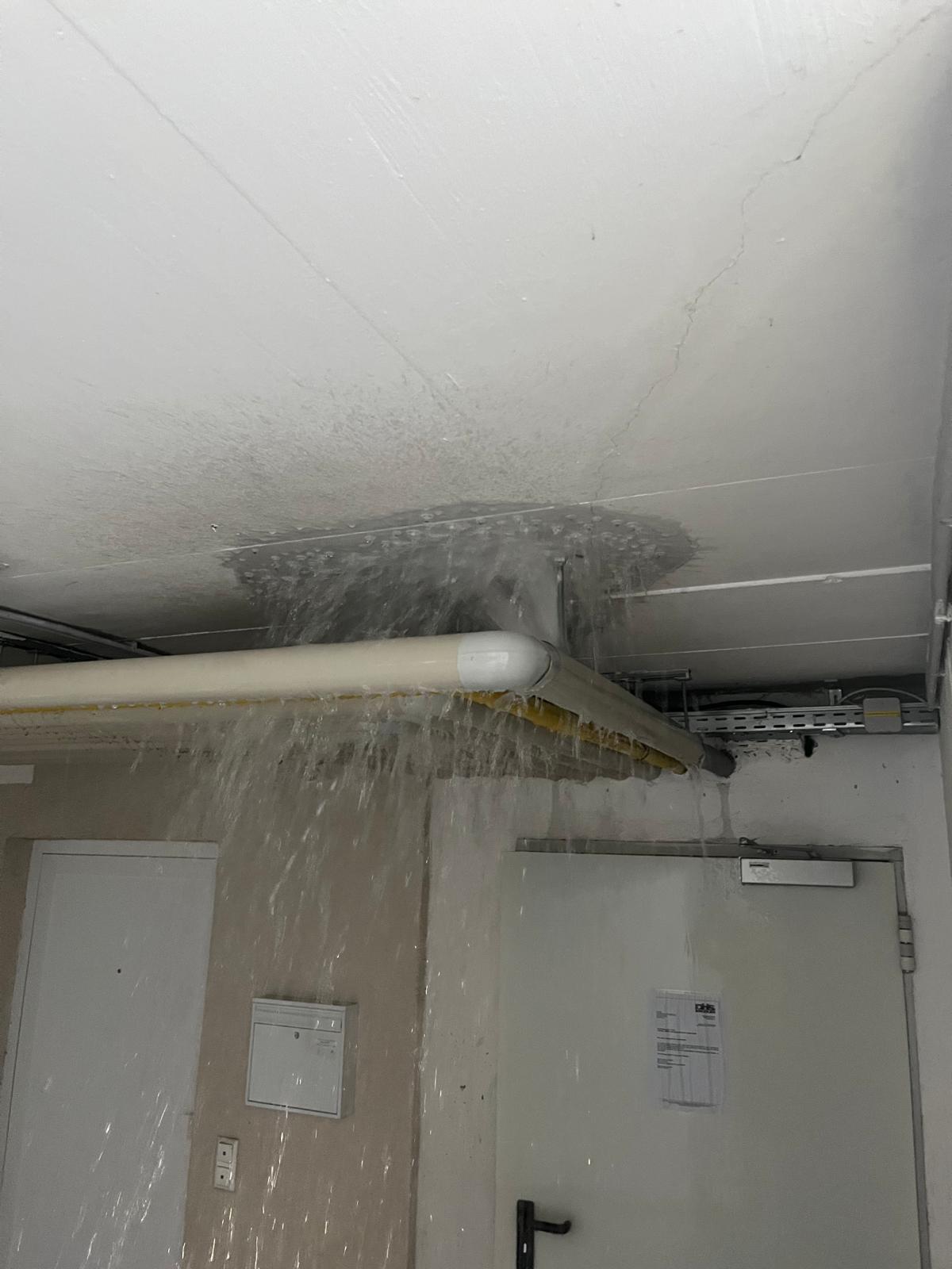 Am Einsatzort stellte der Einsatzleiter fest, dass die Ursache des Wasserschadens in einer defekten Wasserleitung eines Wandhydranten lag, welcher infolge der niedrigen Temperaturen zugefroren